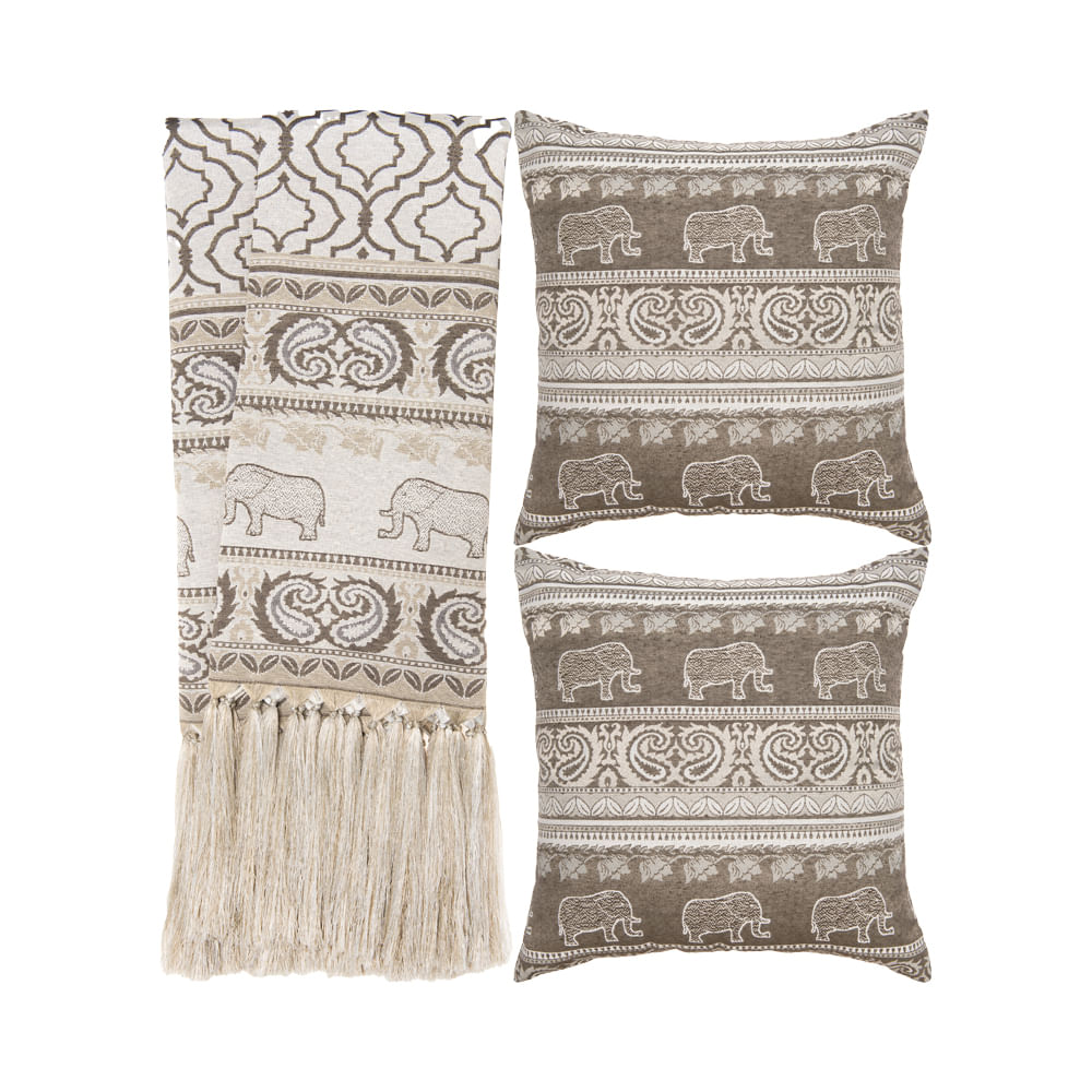Descrição:Sua decoração fica ainda mais bonita com nosso Kit Manta e Capa de Almofada em Tecido Jacquard Rústico. O Kit consiste em 1 Manta + 2 Capas.